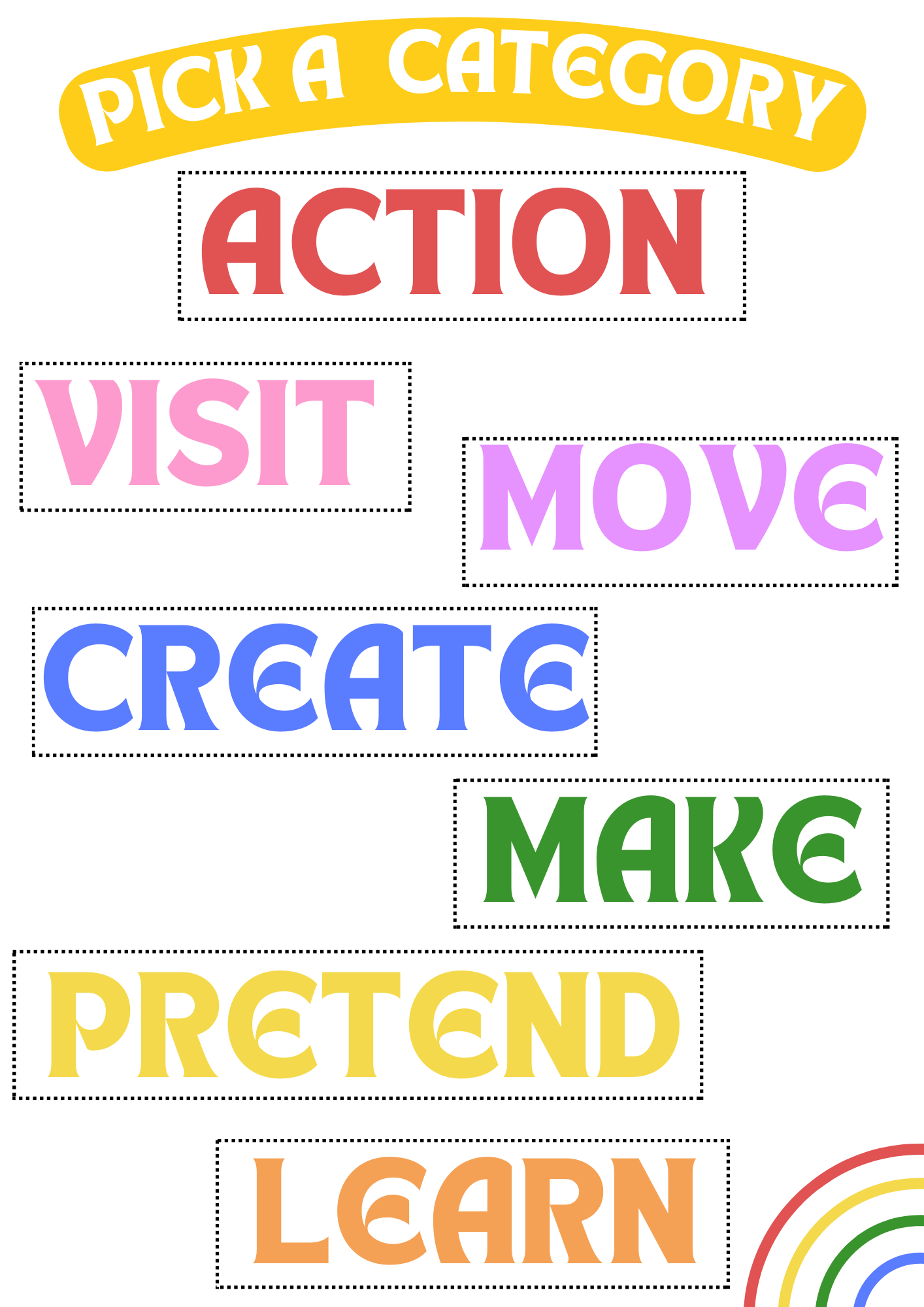 - 5-7 categories of activities per letter