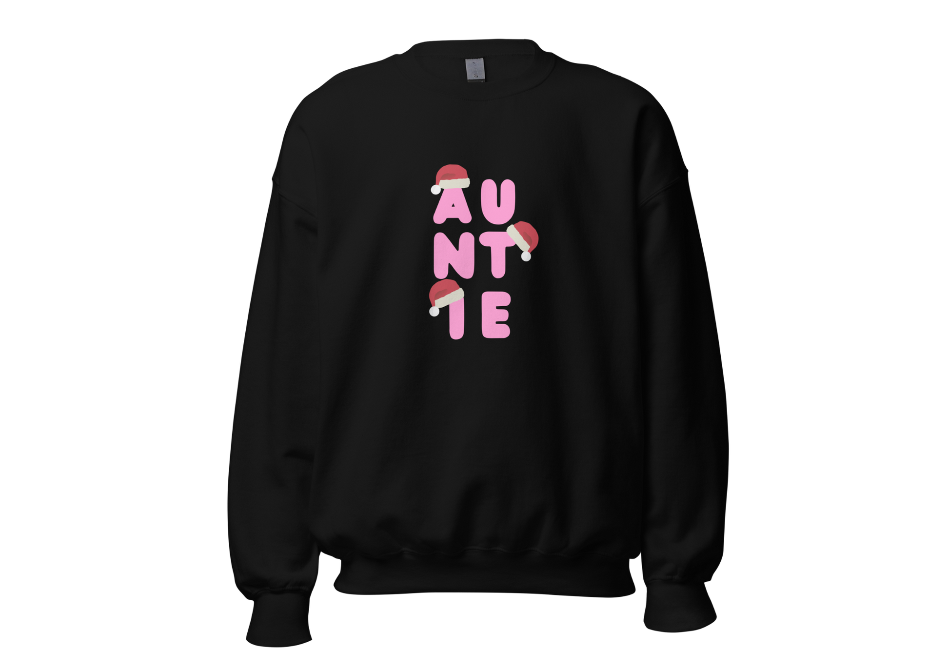 Celebrate the holidays in cozy, cheerful style with our festive Auntie Christmas Hat sweatshirt! Featuring soft pink bubble letters playfully arranged down the front, each topped with an adorable Santa hat, this design is the perfect mix of cute, seasonal, and fun.